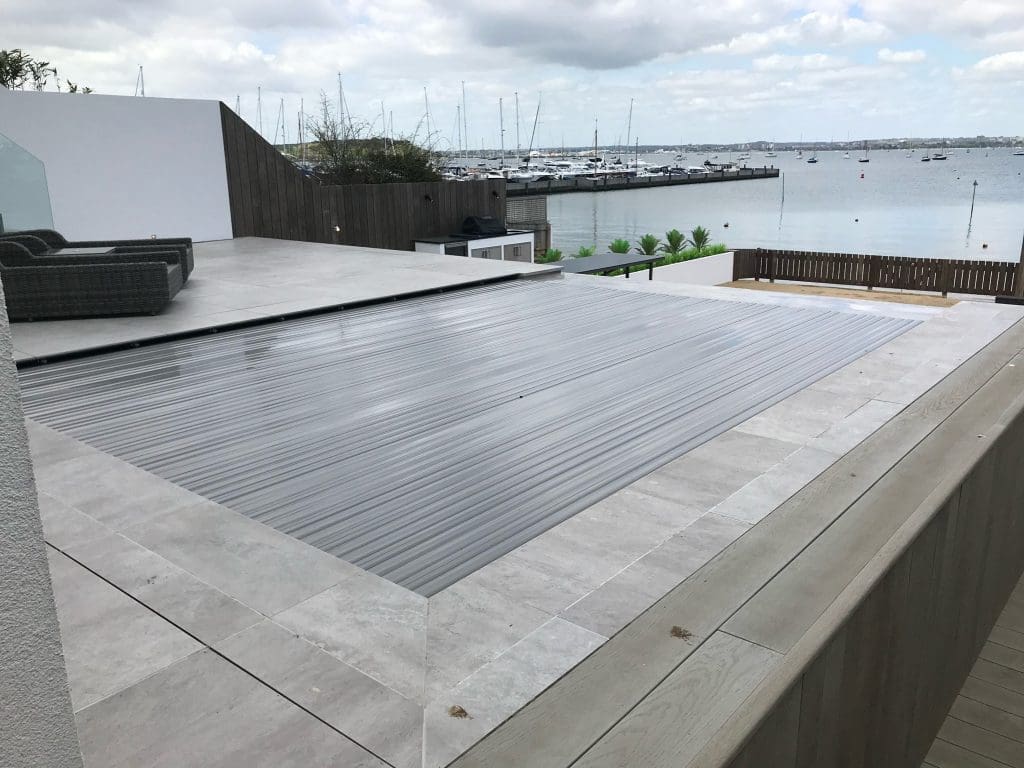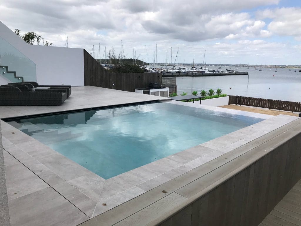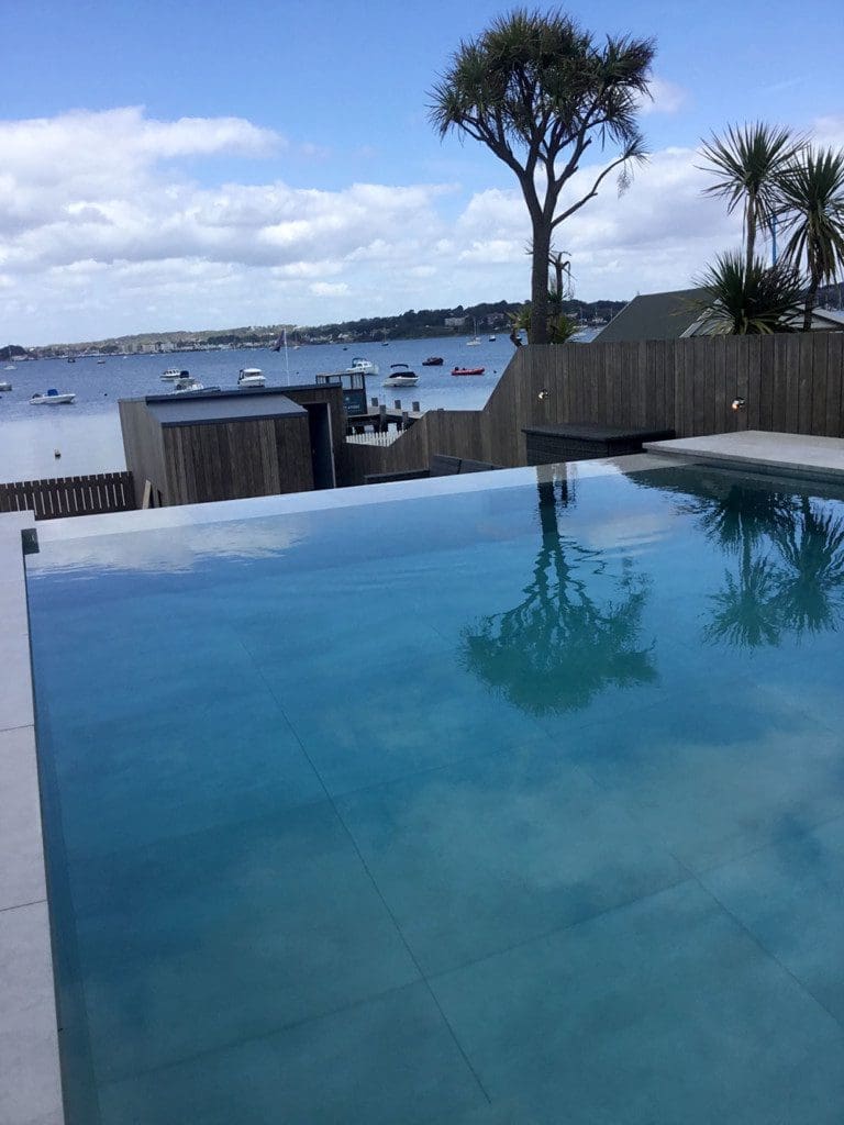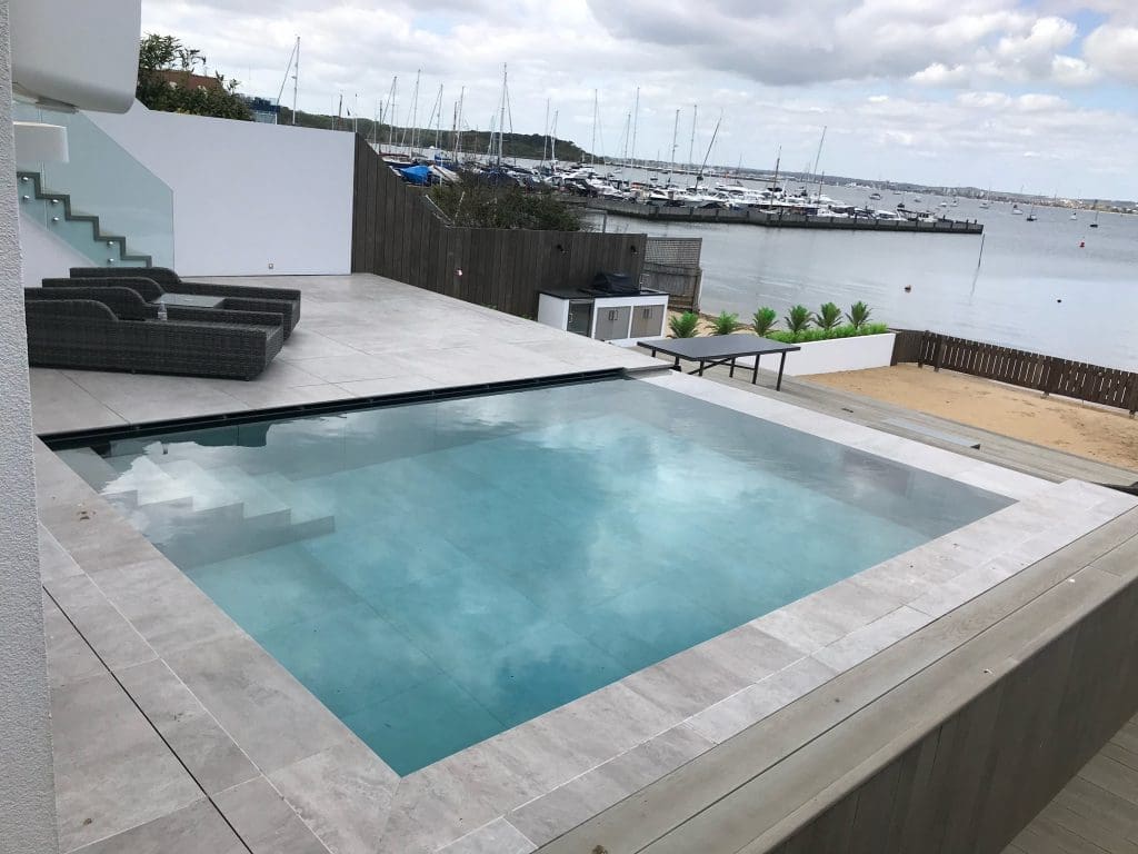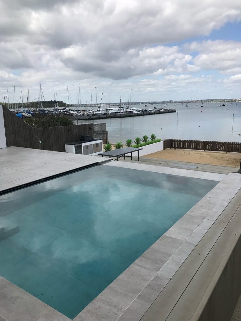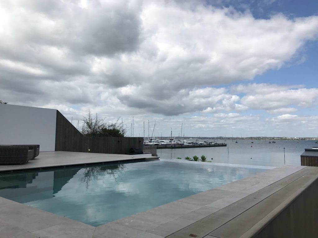 Coastal infinity pool down on the south coast of Poole harbour which benifitted from a counter current swim jet.
